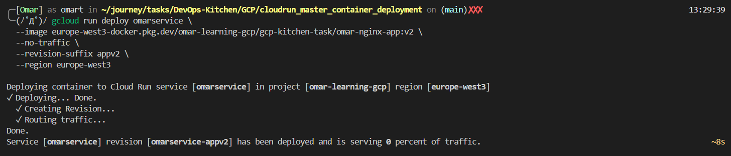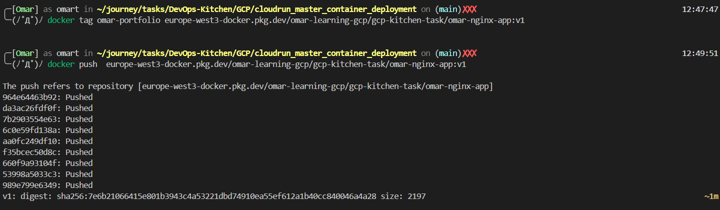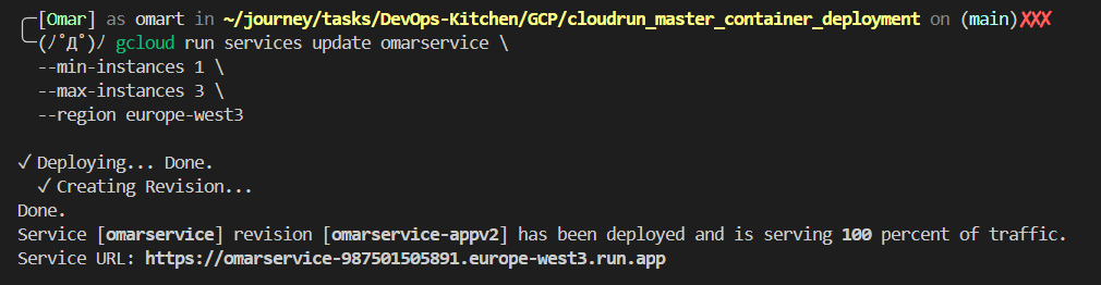 **You Can see Full Comands, Code and Dockerfile in** [**Github**](https://github.com/omartamer630/DevOps-Kitchen/tree/main/GCP/cloudrun_master_container_deployment)